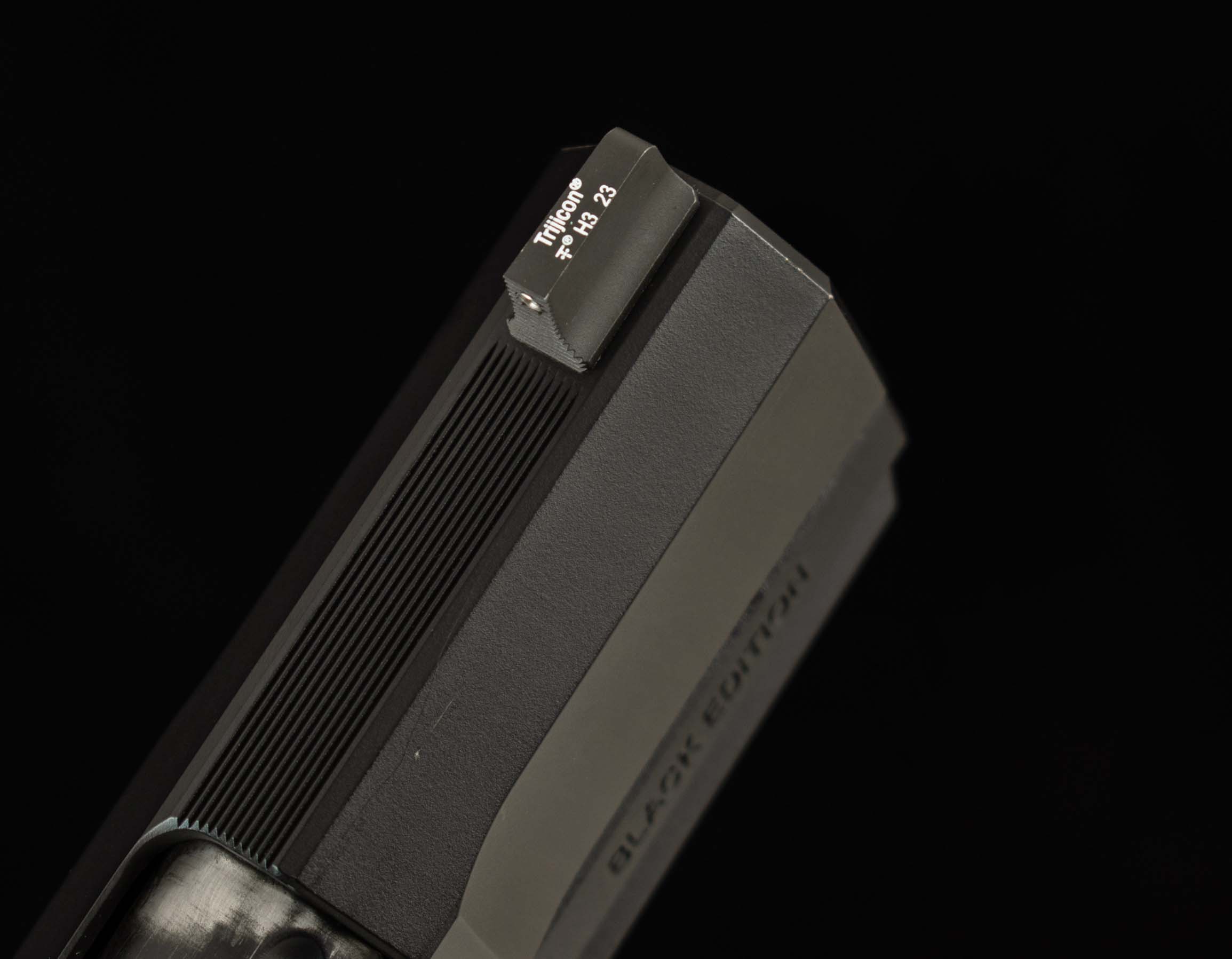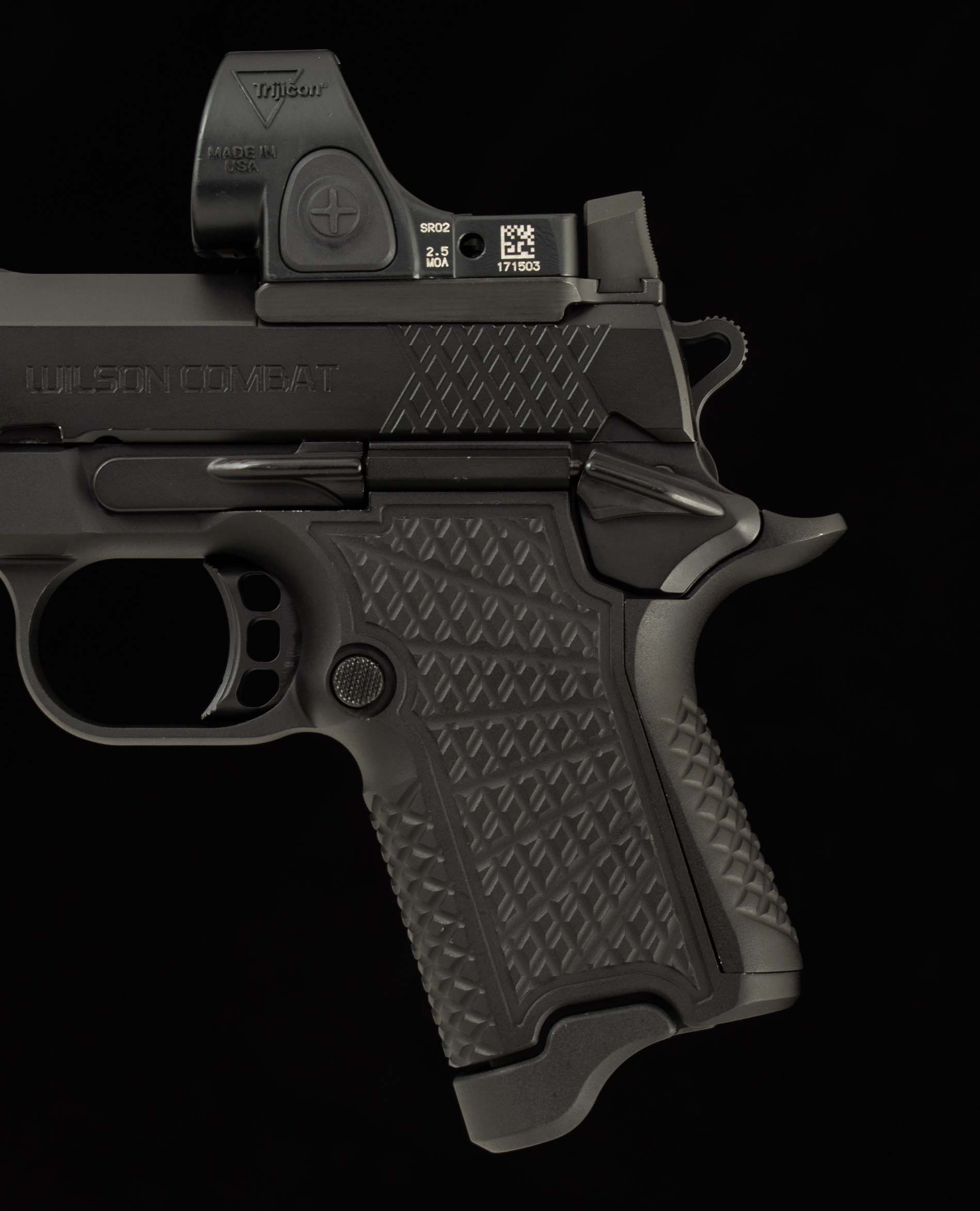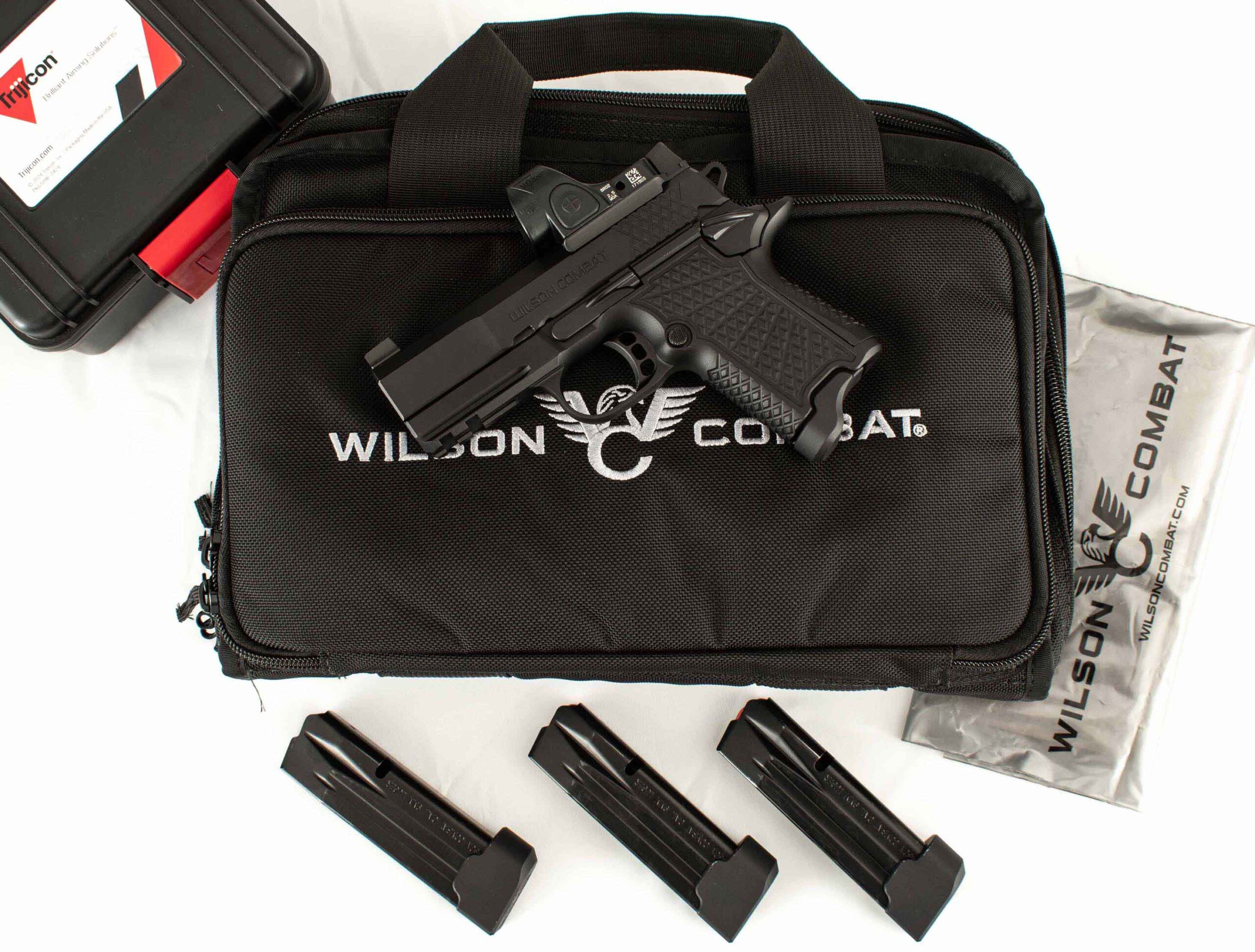 General Specs: Wilson Combat, 2024, 9mm, 27oz., 3.25″ barrel Serial Number: WCXS04111 Vintage Firearms Inc. is pleased to offer this used VFI Signature Series Black Edition Wilson Combat SFX9. This pistol has received many upgrades such as a Trijicon SRO 2.5 MOA, Ambidextrous Concealment Thumb Safety, Tall Front Sight with Tritium Insert, and Carry Optic Cut. From Wilson Combat – This variant of the SFX9 has a 3.25″ sub-compact top-end mated with our new SF (Solid Frame) lightweight full-size aluminum grip frame design. The SFX9 frame is machined from solid T6-7075 aluminum that is rugged, comfortable, and highly concealable. The SFX9 is light enough to carry for long durations and the solid frame’s enhanced grip shape significantly enhances recoil control during rapid-fire and extended range sessions. Rugged, light and easy to shoot-the SFX9 has been optimized to be the best option for concealed carry by Wilson Combat.