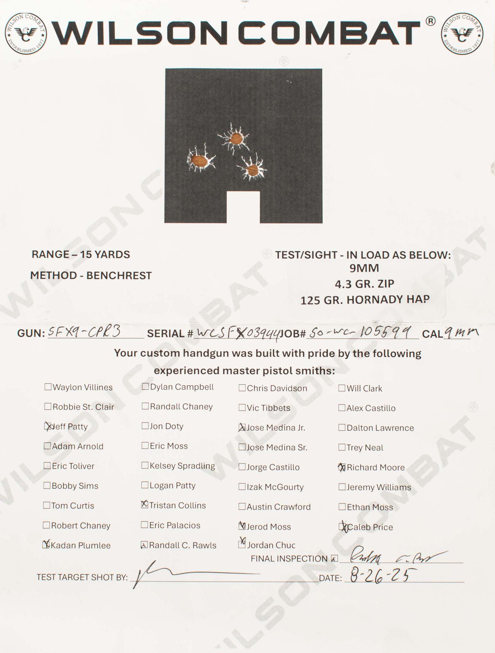 General Specs: Wilson Combat, 2025, 9mm, 30oz. 3.25″