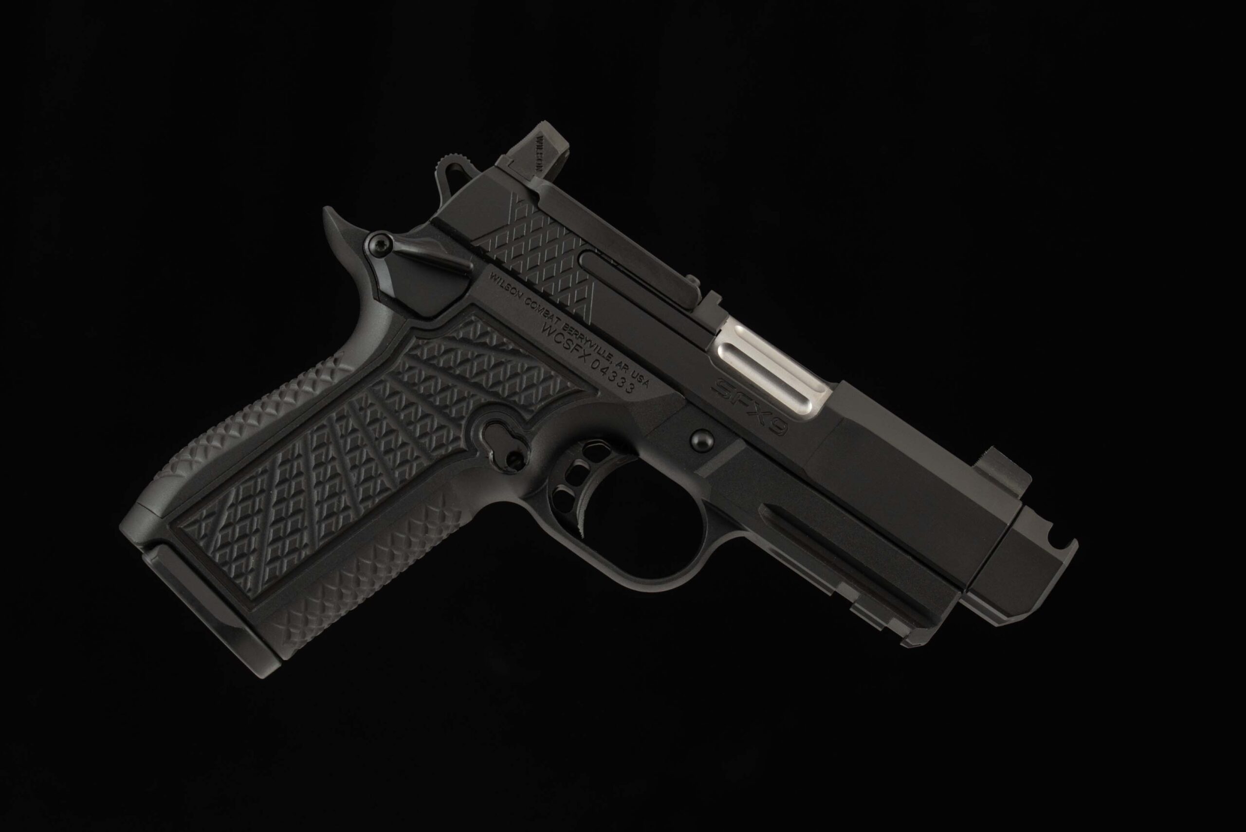 The Wilson Combat SFX9 (3.25″) pairs a sub-compact 3.25″ match-grade barrel top-end with our lightweight full-size SF (Solid Frame) machined from T6-7075 aluminum, creating a highly concealable, carry-friendly double-stack 9mm 1911 that still delivers full-size control. With a slim one-piece solid frame, X-Tac tread grip texture, and compatibility with the reliable EDC X9 magazine, the 3.25″ SFX9 is engineered for superior recoil control, effortless everyday carry, and best-in-class reliability.