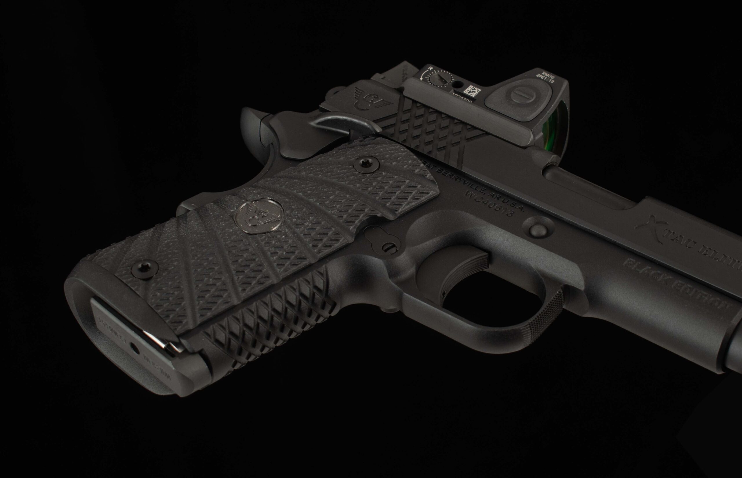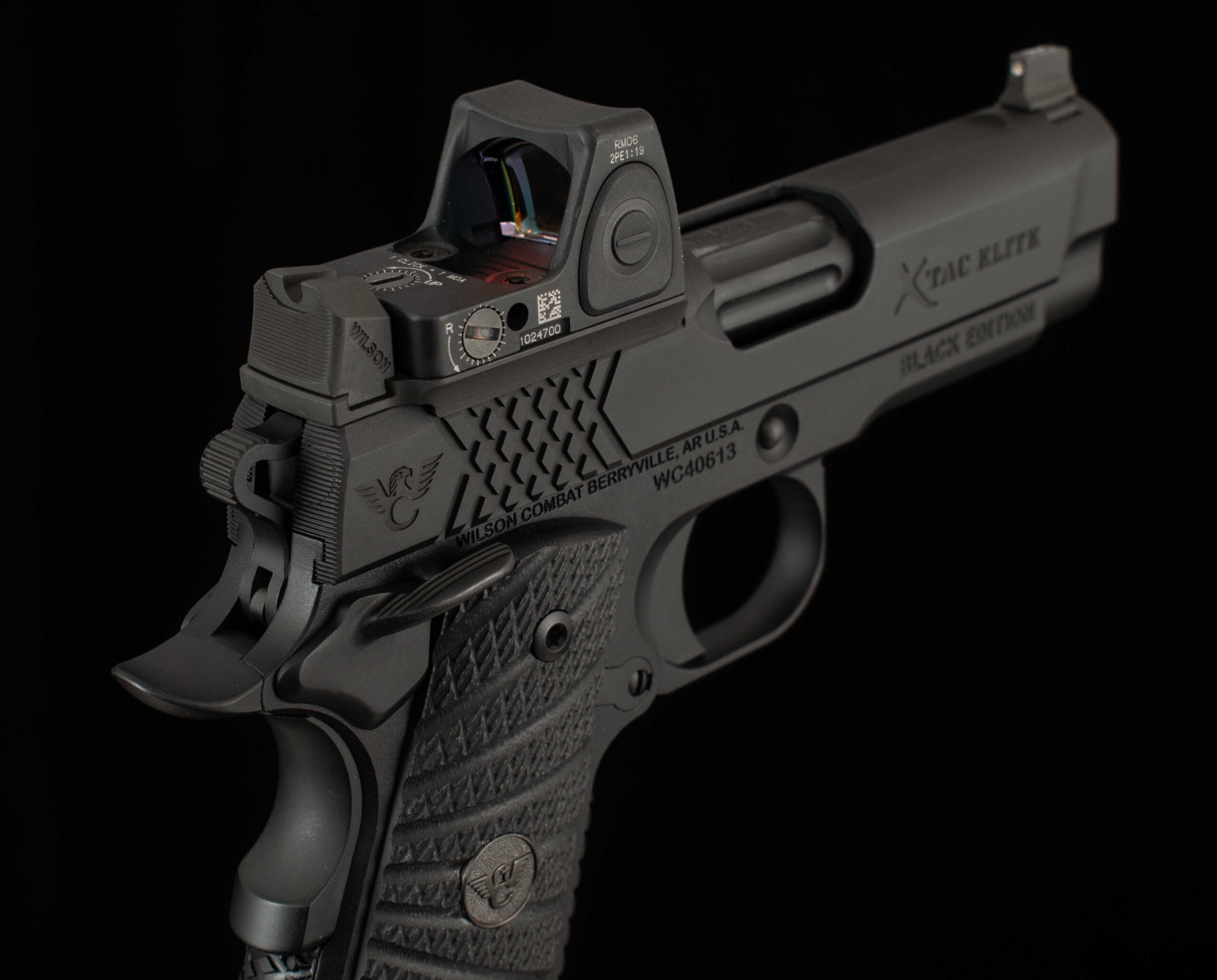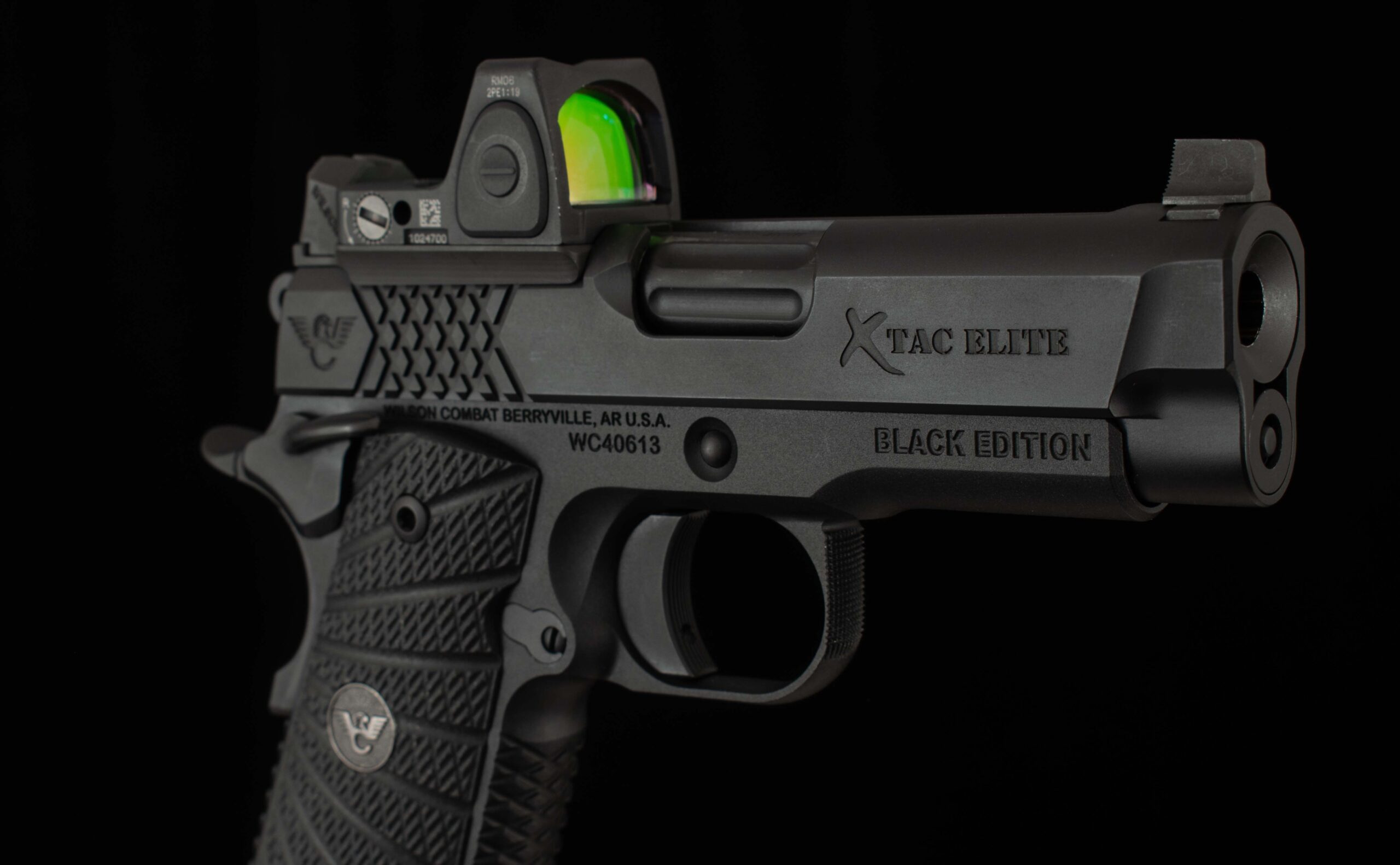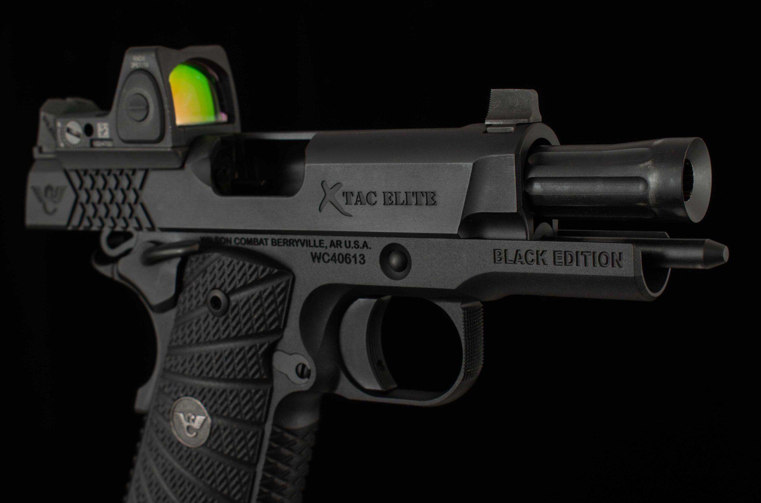 | General Specs: Wilson Combat, 2026, 9mm, 30oz., 3.6″ barrel Serial Number: Call / Email for Availability Vintage Firearms is pleased to offer this Wilson Combat X-Tac Elite Sentinel with our VFI Signature Series Black Edition color scheme. This pistol has received many upgrades such as a Trijicon RMR 3.25 MOA, Lightweight Frame, Narrow Ambidextrous Thumb Safety, High Grip Frame Modification, Carry Optic Cuts, and Tall Front Sight with Tritium Insert. From Wilson Combat – The Sentinel® line is engineered for maximum concealability without sacrificing Wilson Combat’s reliability guarantee. Built around the legendary X-TAC tread pattern, Sentinel pistols deliver rock-solid traction, high-round-count comfort, and secure handling even in wet or gloved conditions. Performance- and carry-focused options include the one-piece Bullet Proof® magwell for faster reloads, a concealment hammer and grip safety, and precision top- and rear-slide serrations to reduce glare on bright range days. Slide details such as machined carry cuts, Ball Endmill accents, and a heavy chamfered bottom streamline the profile, remove sharp edges, and add refined styling.