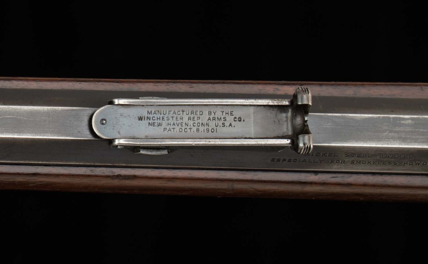 General Specs: Winchester, 1902, .32 WS, 8lbs. 3oz., LOP 13″ Serial Number: 249663 Americas favorite deer rifle. The perfect hunting gun either on foot or from the saddle, lightweight, nimble, and fast to action the 94 is simple, safe, and reliable. Designed by John Browning the Model 1894 is the rifle most associated with the Winchester name; it has sold over 7,000,000 units and is often referred to as the “ultimate lever-action”. Offered throughout its production in many different configurations along with a myriad of customizable options 1894’s are varied and often unique. This Winchester Model1894, sn249663, was manufactured in 1902. The 26” octagon barrel has a bore that is an 8 out of 10 with crisp rifling and 90% factory bluing. This rifle is chambered for Winchester’s .32WS cartridge. A more powerful round when compared to the ubiquitous 30-30. According to Winchester’s original claims, the .32 WS has 5-10% more energy than the .30-30 at close ranges, an ideal bullet for close woodland hunts, and this rifle was outfitted from the factory with longer range shooting in mind as well. It has a Lyman No. 28 front sight, Lyman No. 2 rear peep site, and a unique Winchester adjustable ramp rear sight specifically designed for the .32 WS M.94. The receiver shows 85% factory bluing with some areas going to a pleasing patina mostly at the bottom edges of the receiver – righteous wear at the carry point of the gun. Wood to metal fit is superb, the screws are excellent. The wood has a handsome hue with the expected wear from many adventures in the wild and terminates in the classic crescent buttplate. This is a good and honest gun from the turn of the century and a great Winchester for any occasion! Thanks for looking!