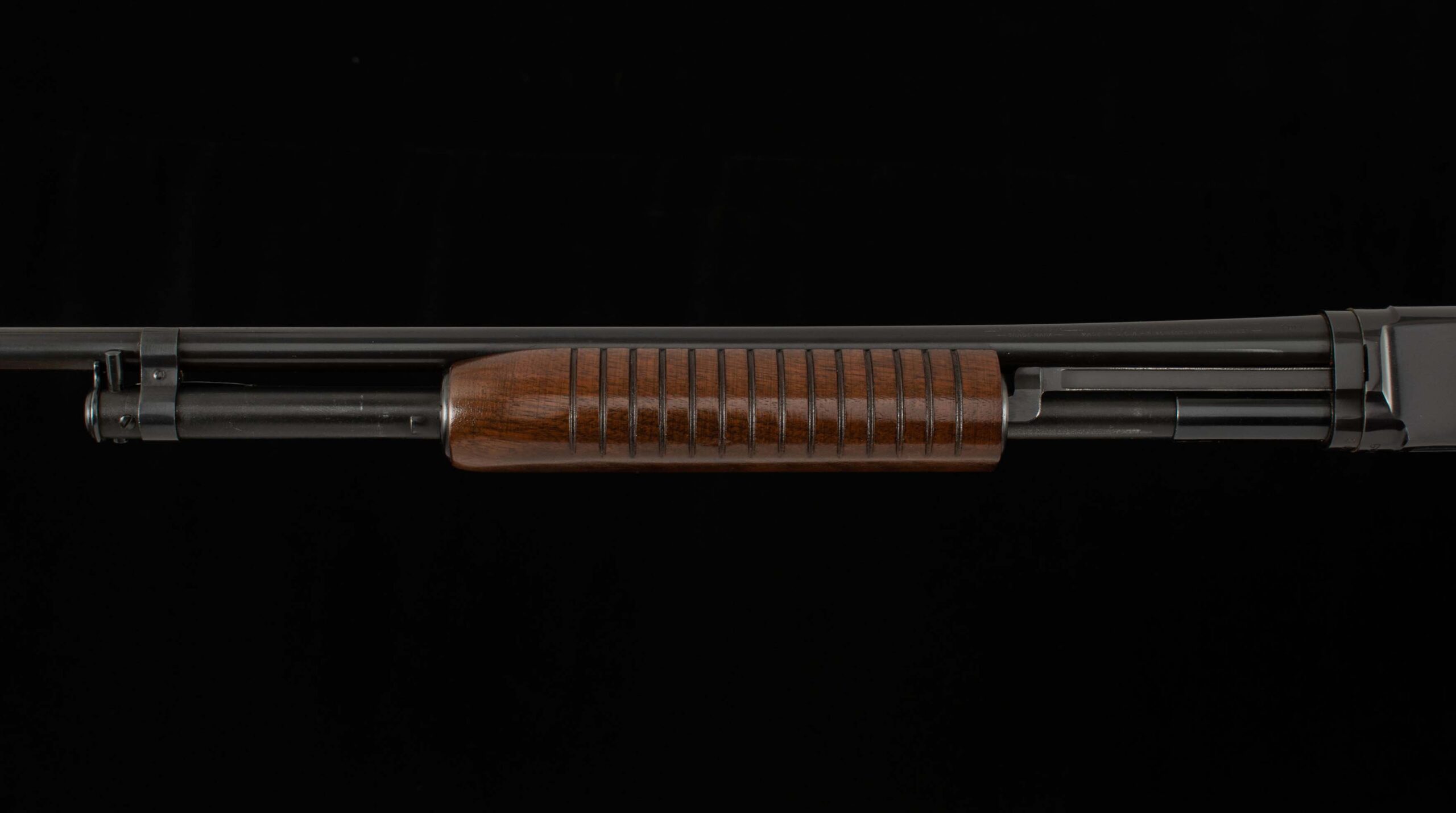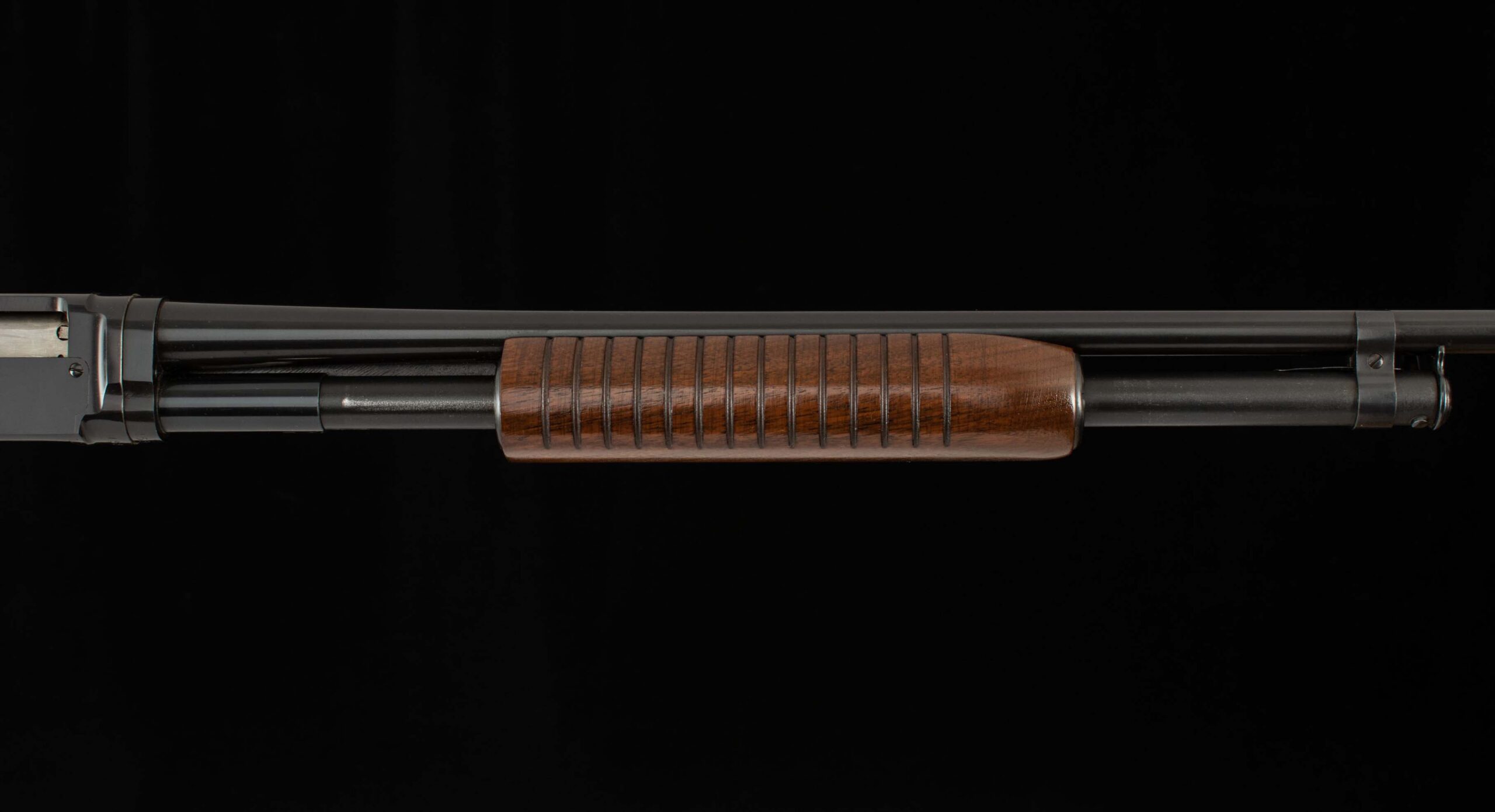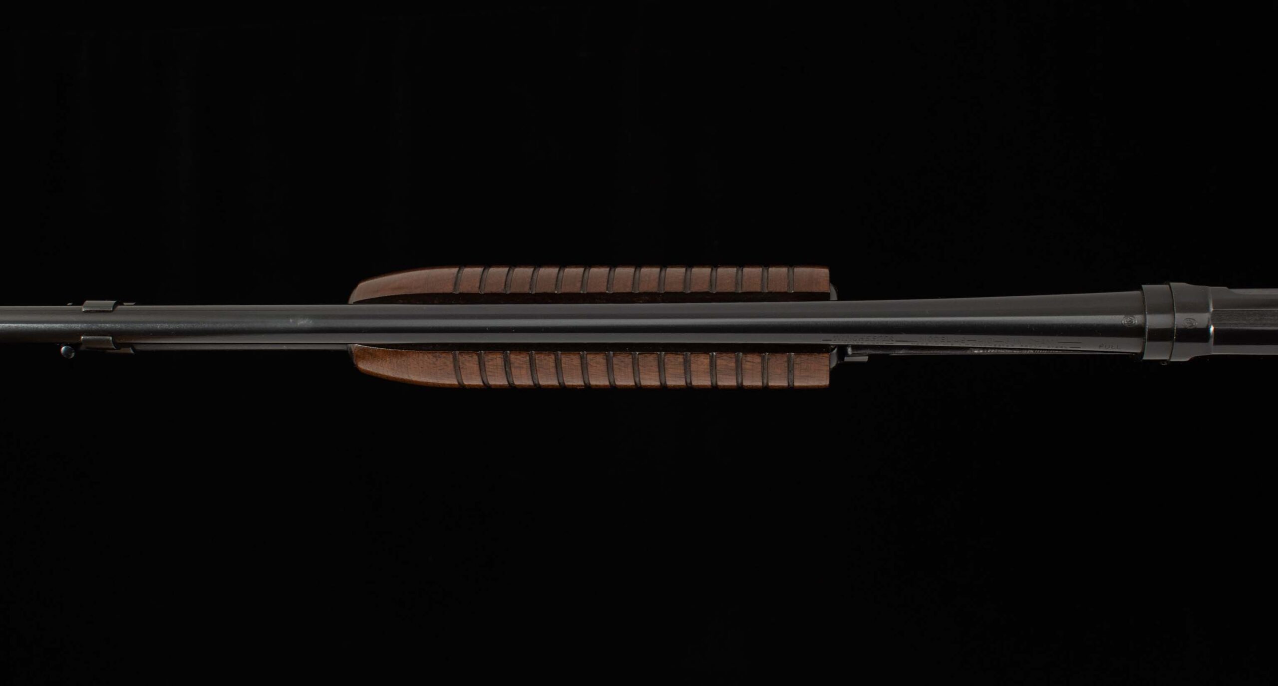 Marketed as ‘Everybody’s Sweetheart,’ as well as “The Greatest Little Shotgun in the World” at its introduction the sleek, fast handling Model 42 soon became a hit with upland hunters and Skeet shooters alike. The Model 42 is an icon in the ranks of Winchester firearms, made in the days of the highest quality control and hand fitted parts.  The Model 42 was a flawlessly produced little pump gun, chambered only for the diminutive .410 shotgun shell. In the 30 years of production that ran from 1933 to 1963, just 160,000 of these fine guns were produced. This example, serial number 153708 was manufactured in 1959. It’s been in a private collection for its entire life, taken out and admired often and maybe a test fire! Check out the photographs and you’ll see a Model 42 with crisp lines; 99% factory finishes throughout with just a few light handling marks and barely a mark on the bolt face, even the inside of the action looks like new!  This Winchester Model 42 weighs just 5lbs. 12oz. it has a 26” barrel with a mirror bore and is choked full. A great choice for those who are die hard Winchester fans or just looking for a reliable .410 in high factory condition. Vintage Firearms provides the most thorough photos, description, and specifications in the industry, providing you all the information you need to make a wise purchase. Don’t hesitate to make the call and put this gun in your collection.  The specifications are shown below. Thanks for looking!