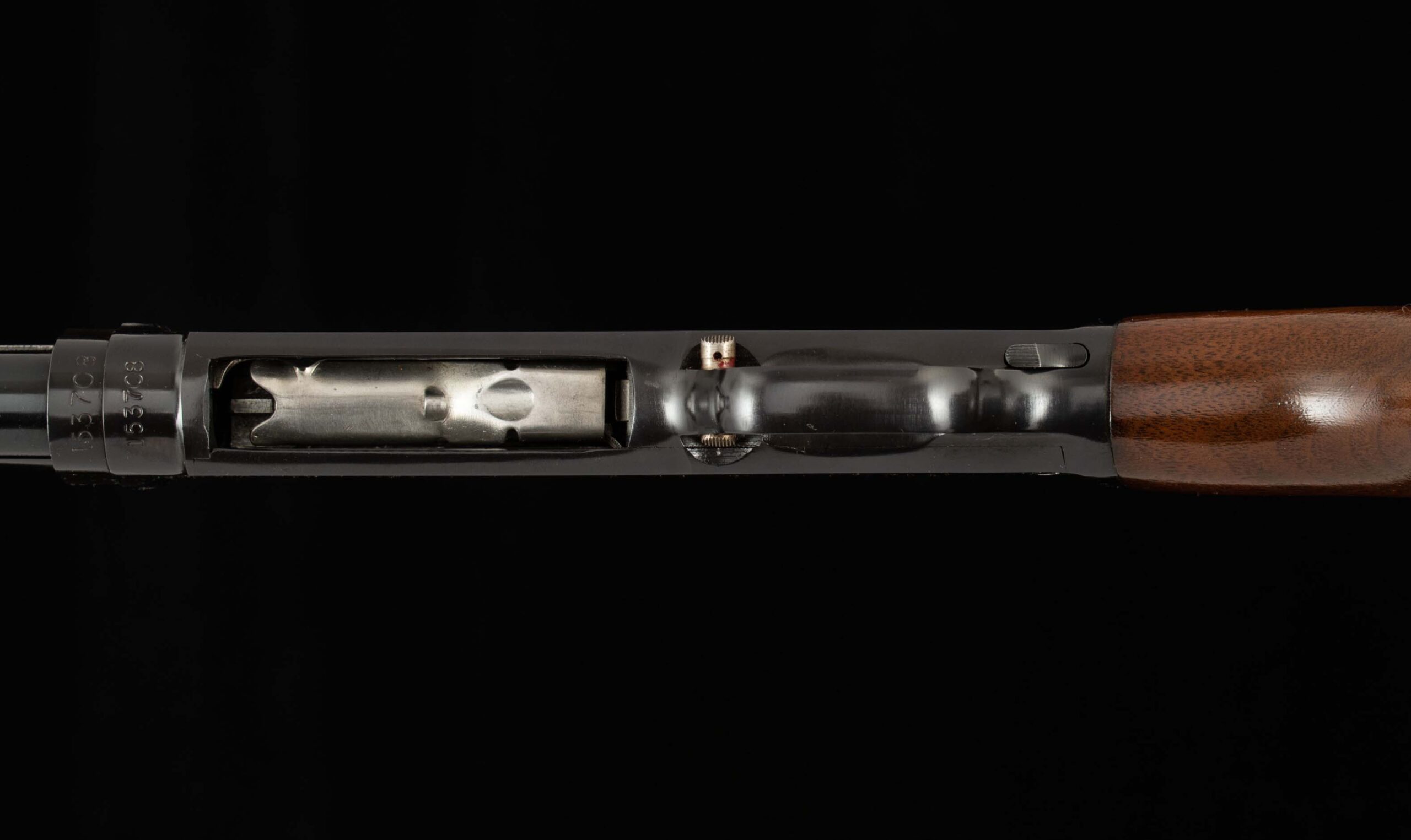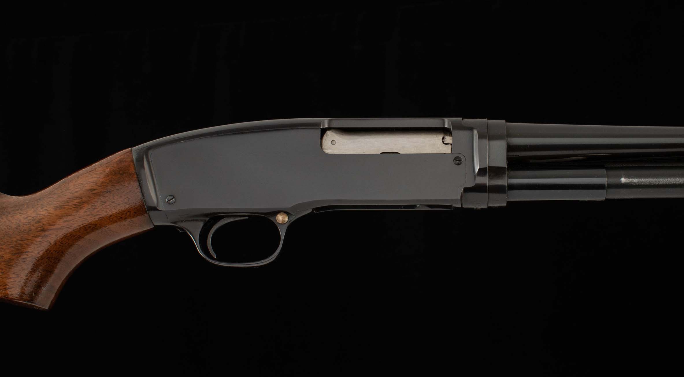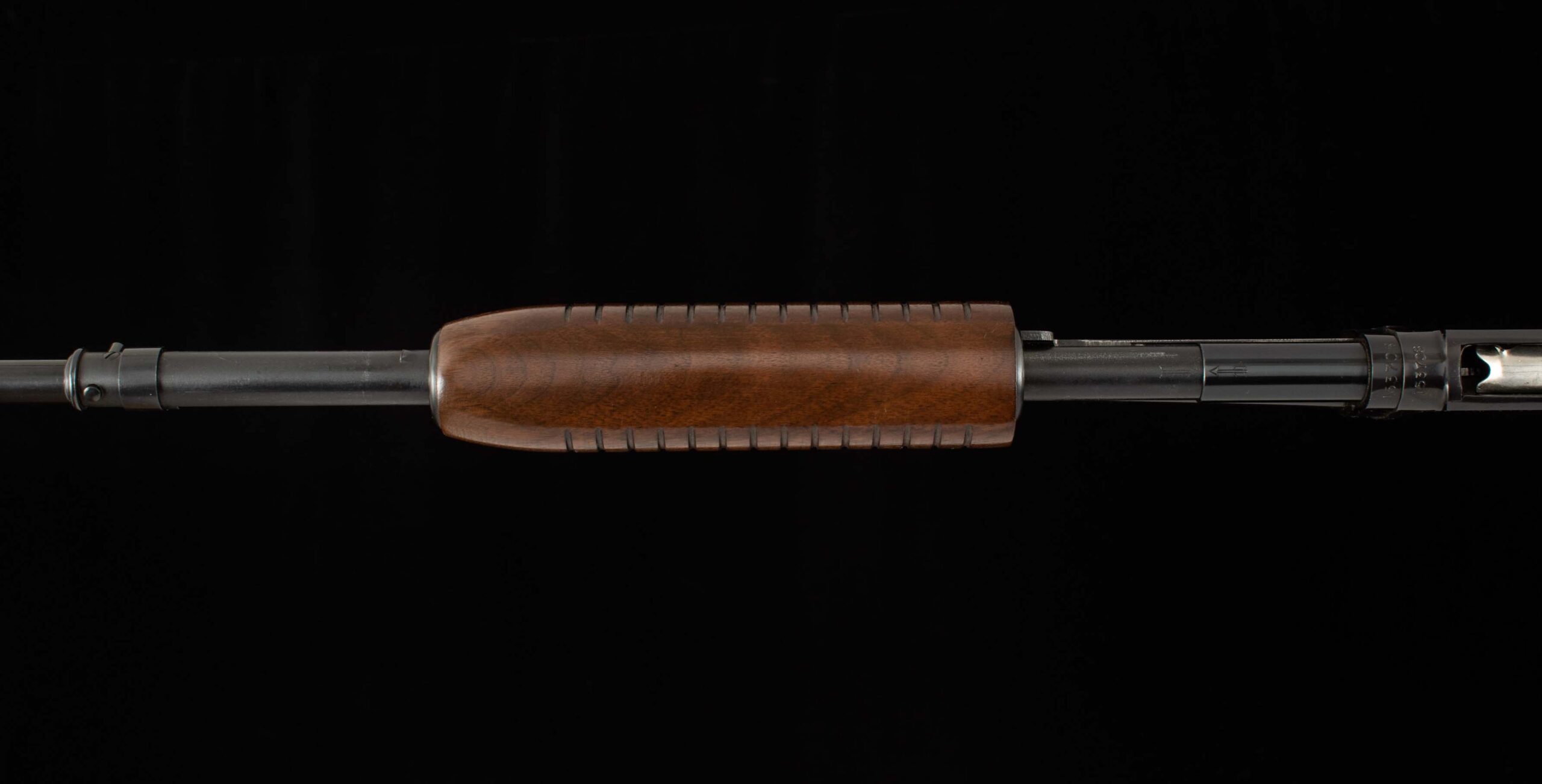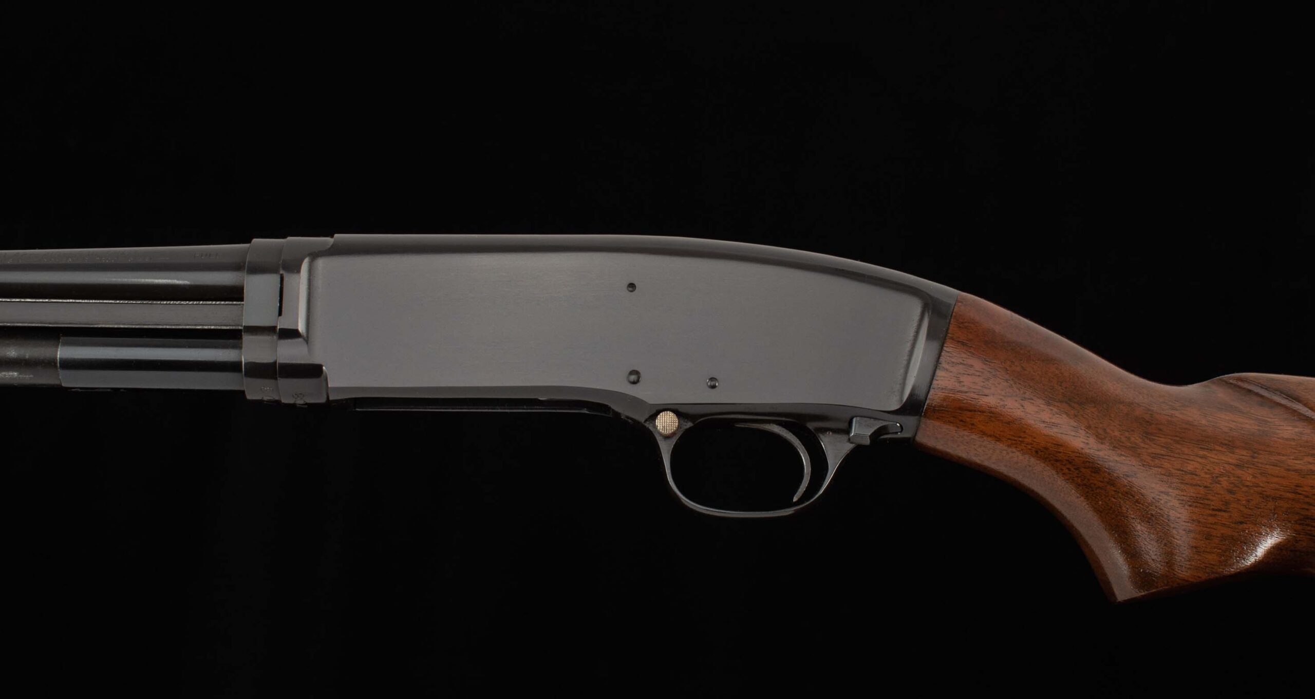 Marketed as ‘Everybody’s Sweetheart,’ as well as “The Greatest Little Shotgun in the World” at its introduction the sleek, fast handling Model 42 soon became a hit with upland hunters and Skeet shooters alike. The Model 42 is an icon in the ranks of Winchester firearms, made in the days of the highest quality control and hand fitted parts.  The Model 42 was a flawlessly produced little pump gun, chambered only for the diminutive .410 shotgun shell. In the 30 years of production that ran from 1933 to 1963, just 160,000 of these fine guns were produced. This example, serial number 153708 was manufactured in 1959. It’s been in a private collection for its entire life, taken out and admired often and maybe a test fire! Check out the photographs and you’ll see a Model 42 with crisp lines; 99% factory finishes throughout with just a few light handling marks and barely a mark on the bolt face, even the inside of the action looks like new!  This Winchester Model 42 weighs just 5lbs. 12oz. it has a 26” barrel with a mirror bore and is choked full. A great choice for those who are die hard Winchester fans or just looking for a reliable .410 in high factory condition. Vintage Firearms provides the most thorough photos, description, and specifications in the industry, providing you all the information you need to make a wise purchase. Don’t hesitate to make the call and put this gun in your collection.  The specifications are shown below. Thanks for looking!