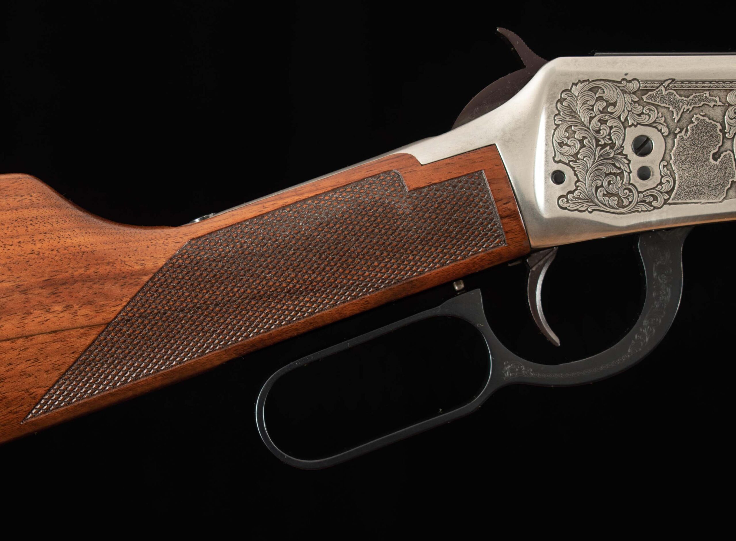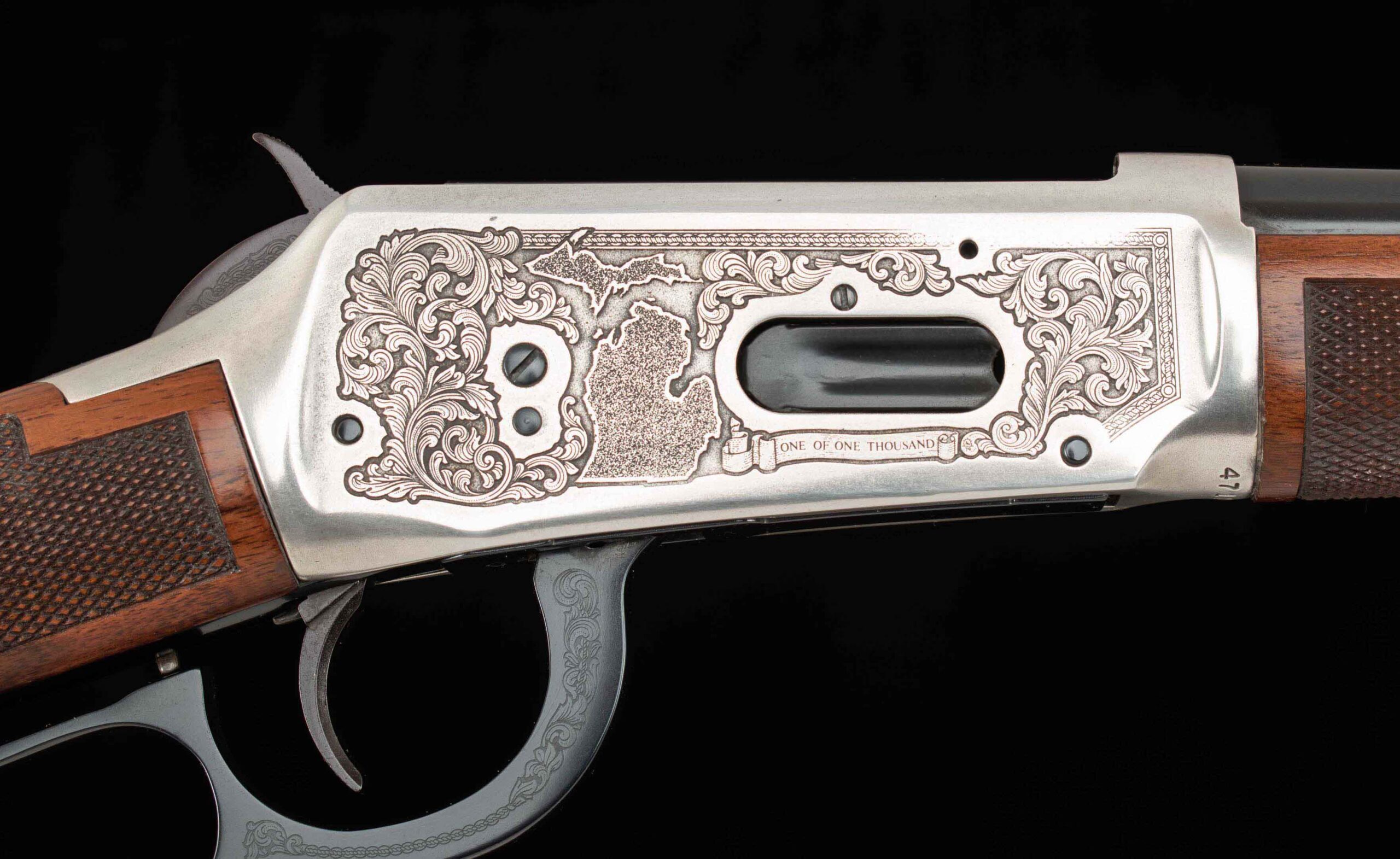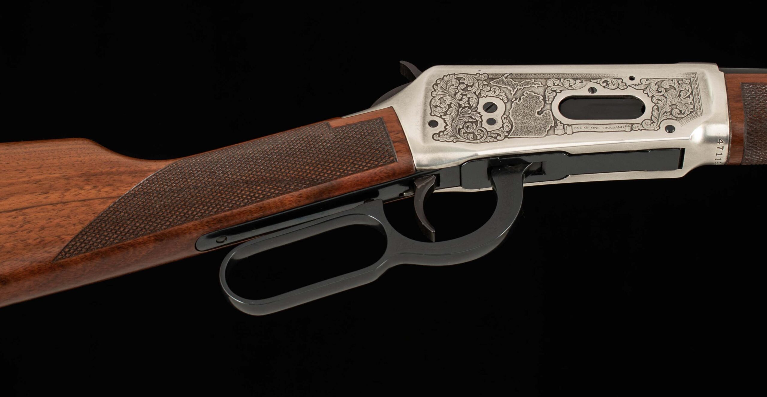 | Action: lever Receiver Condition: 99.5% silver plated Screws: perfect Engraving: crisp-clear Trigger Type: single-crisp Trigger Guard Color: 99.5% |